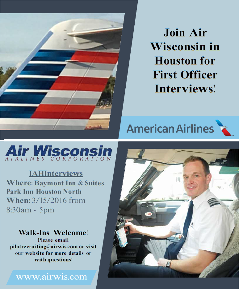 Join Air Wisconsin In Houston for First Officer Interviews