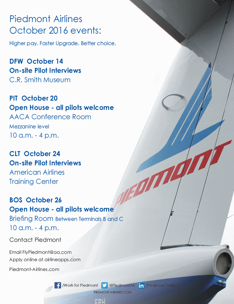 Piedmont Airlines Announces October Events