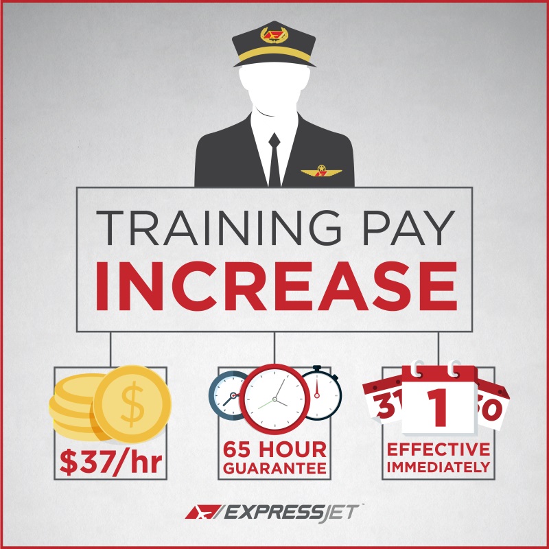 ExpressJet increases training pay to $37/hr. with a 65 hour guarantee