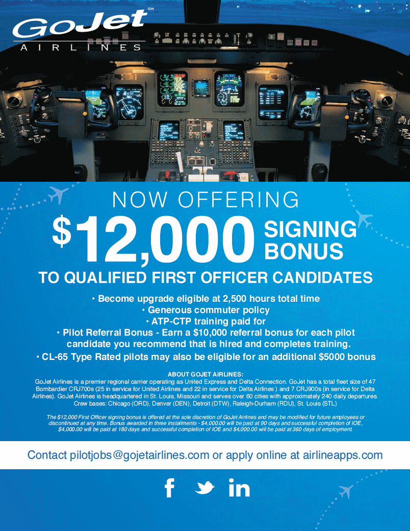 $12,000 Signing Bonus Now Offered by GoJet Airlines