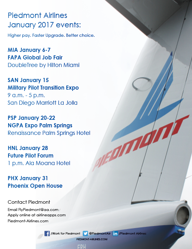 Piedmont Airlines Announces January Events