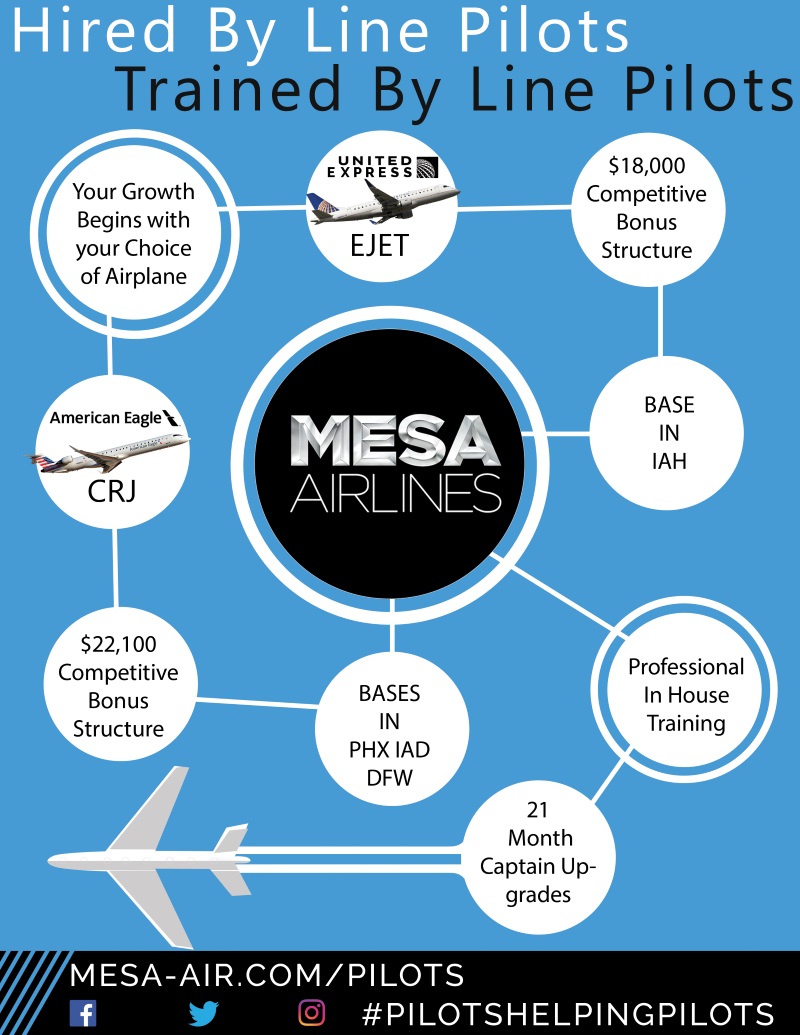 Get Hired and Receive Professional In House Training by Line Pilots at Mesa