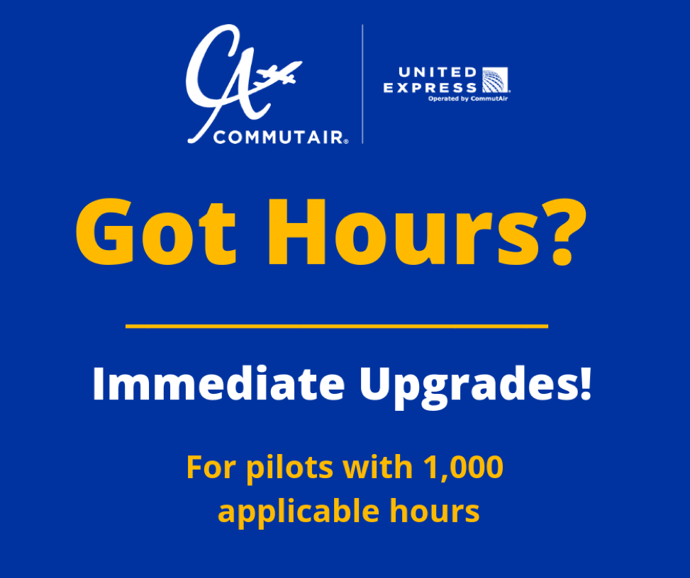 Do you have 1,000 applicable hours? Feeling stagnate at your current airline/company? If so, CommutAir is now offering immediate upgrades for pilots with 1,000 applicable hours.