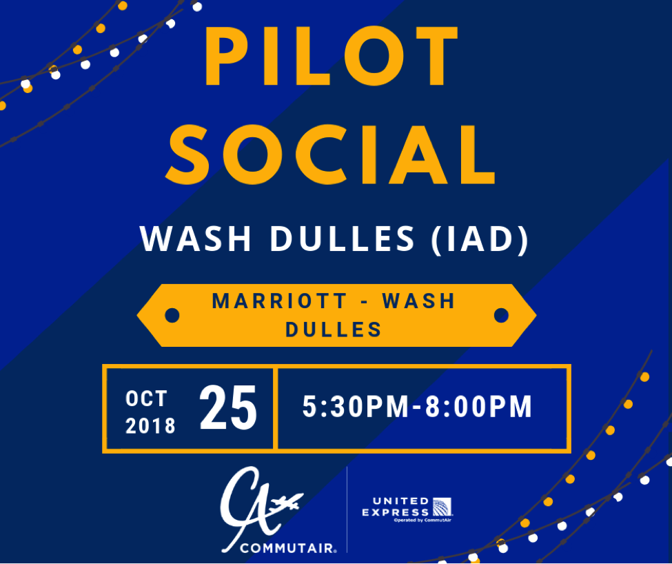 Now is your chance to learn more about CommutAir over apps & drinks on Thursday, October 25, 2018 at the Marriott Hotel – Washington Dulles.