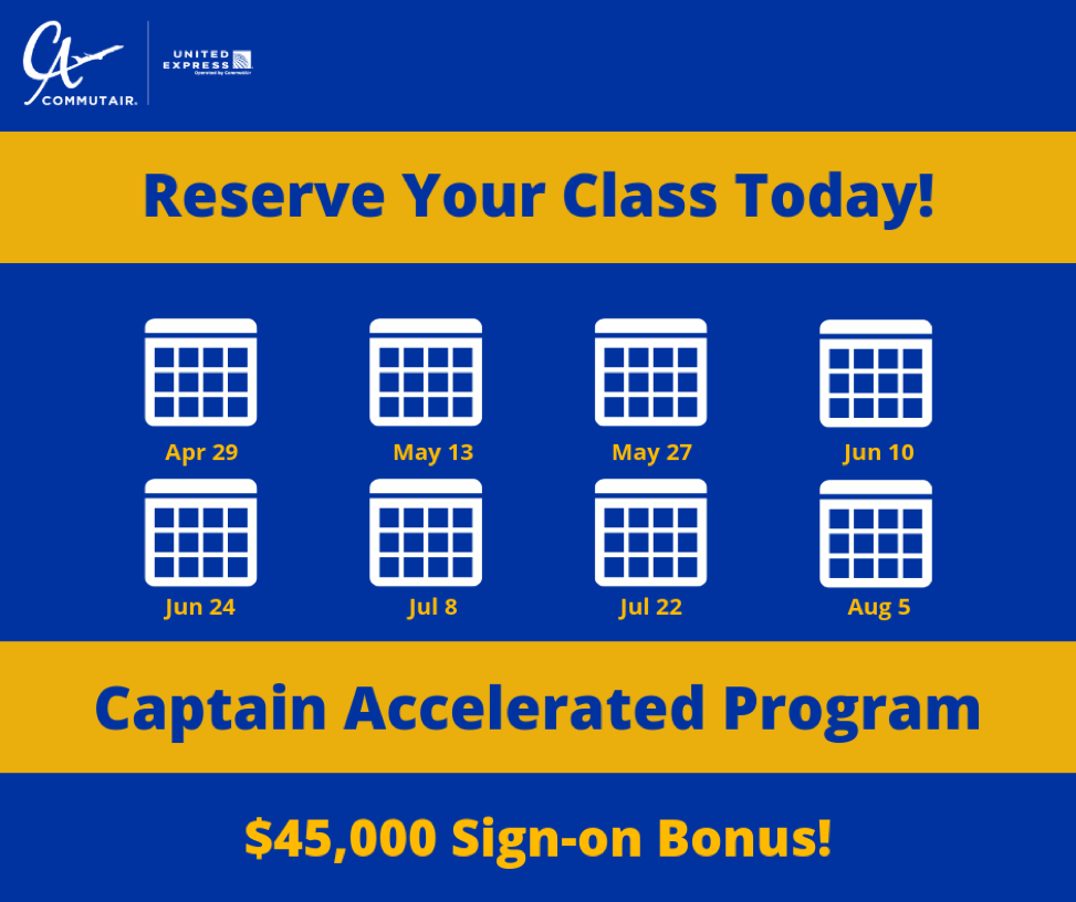 Learn more about CommutAir’s CAP by visiting www.flycommutair.com/captain-eligible-pilots/
